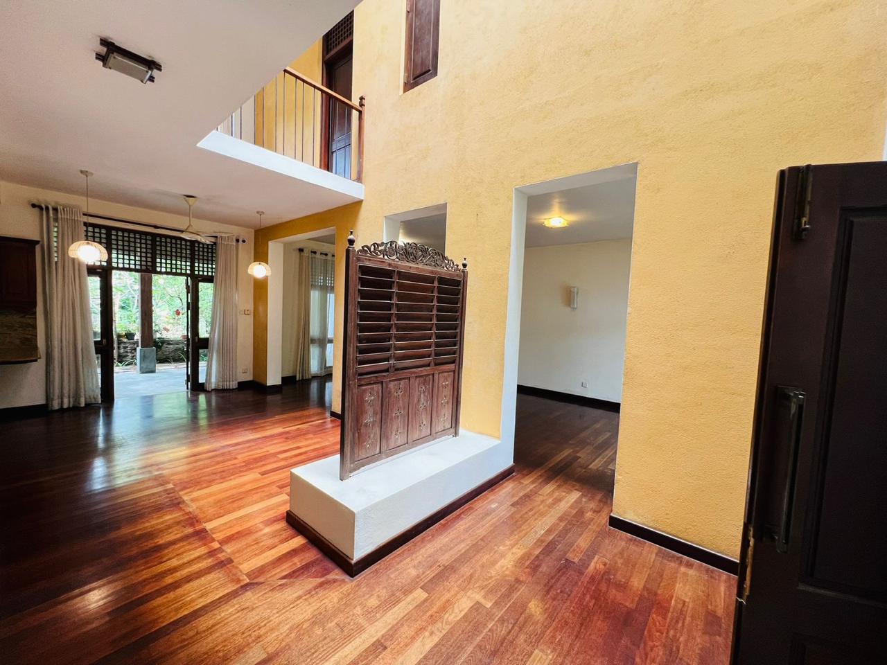 Details of the Property Mulleriyawa North 3000 Sq Ft. 01 Bedroom (Provision for additional 02 rooms) 03 Washrooms Elegantly Designed Bungalow on 122 Perches of Land Long River Front Authentic antique doors and windows Several solid wooden columns Several fully grown trees on the Property. Off Ambatale Road Close to Kaduwela, Expressway entrance Price Rs. 110 Million Negotiable
