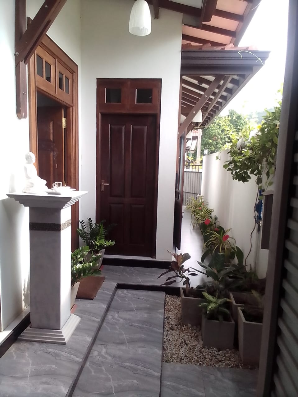 Beautiful Rock House, in a gated community - exclusive neighbourhood - on 11.5 perches, overlooking the outer circular highway. Off Kahantota Road, about 2 km to SLIIT and Kothalawala Interchange & 3 km to the Athurugiriya Interchange On high ground with no risk of flooding The view will never be blocked Ground Floor - 4 BR (Air Conditioned, large Master BR with hot water) 4 Baths (3 attached) Fully fitted pantry/kitchen with cooker hob/range hood Dining room with Mahogany storage cupboards Maid’s Room/Toilet Lockable garage with access to the Master BR 1st Floor - Large room (can be used as a BR or TV area) Attached bathroom Large covered terrace with a beautiful view The whole house is tiled and built of rock except for a few internal walls. All areas inside the house are fitted with ceiling fans. It has pipe borne water and 3 phase electricity. Rs 42 million negotiable