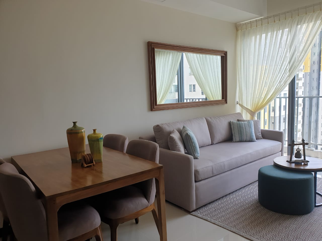 Description of the Property : Colombo 03 (Next to Cinnamon Grand Hotel) Monarch Residencies 26th Floor Direct Sea View 1000 Sq. Ft 02 Bedrooms (Built-in Cupboards) 02 Washrooms (1 attached) Living and Dining Semi-equipped Pantry - Large Refrigerator - Cooker and Oven - Washing Machine with dryer Fully Air-conditioned 1 Parking Slot Common Amenities - Swimming Pool - Gym - Private access to Cinnamon Grand, Keells Super and Crescat Shopping Mall RENT : 1200 USD per Month Negotiable